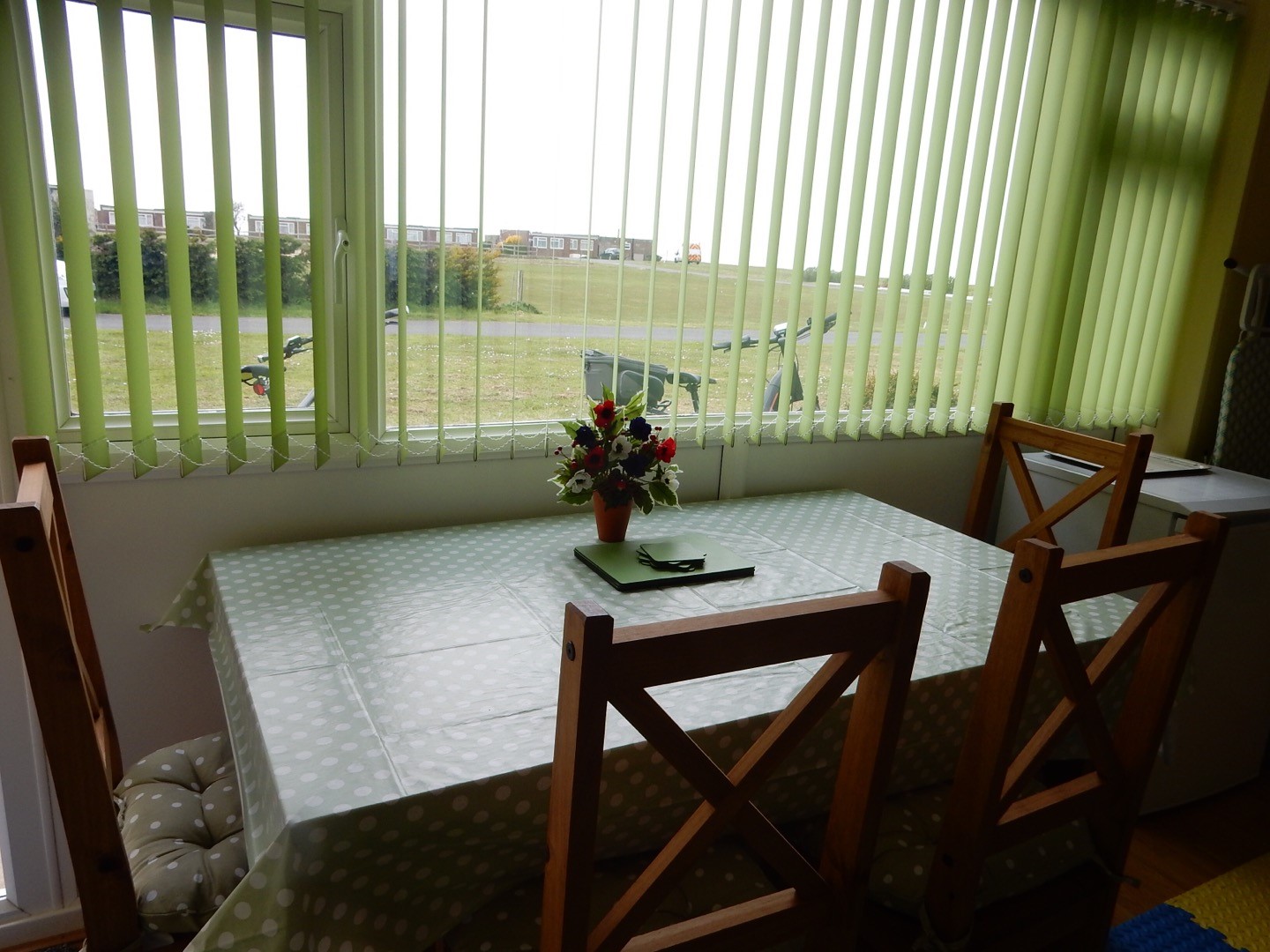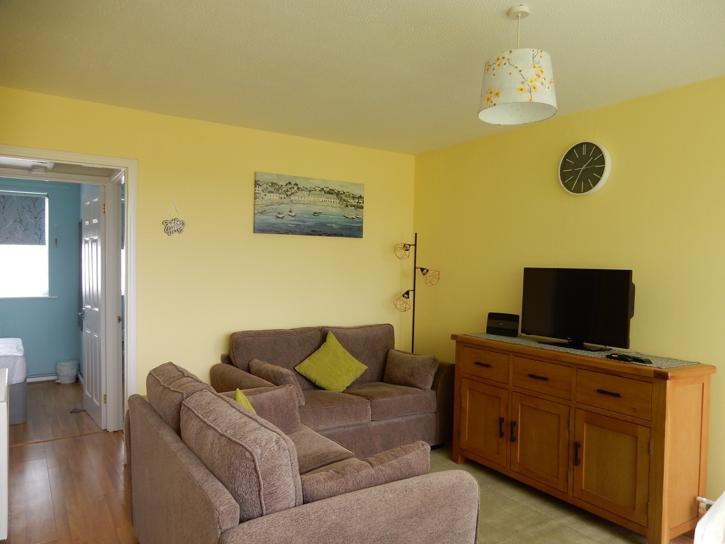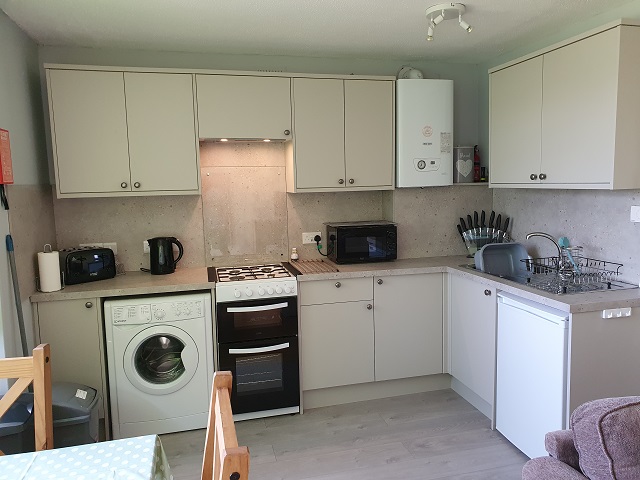 A quiet bungalow away from the road with lovely countryside views and sea glimpses, with central heating, all white goods, part furnished